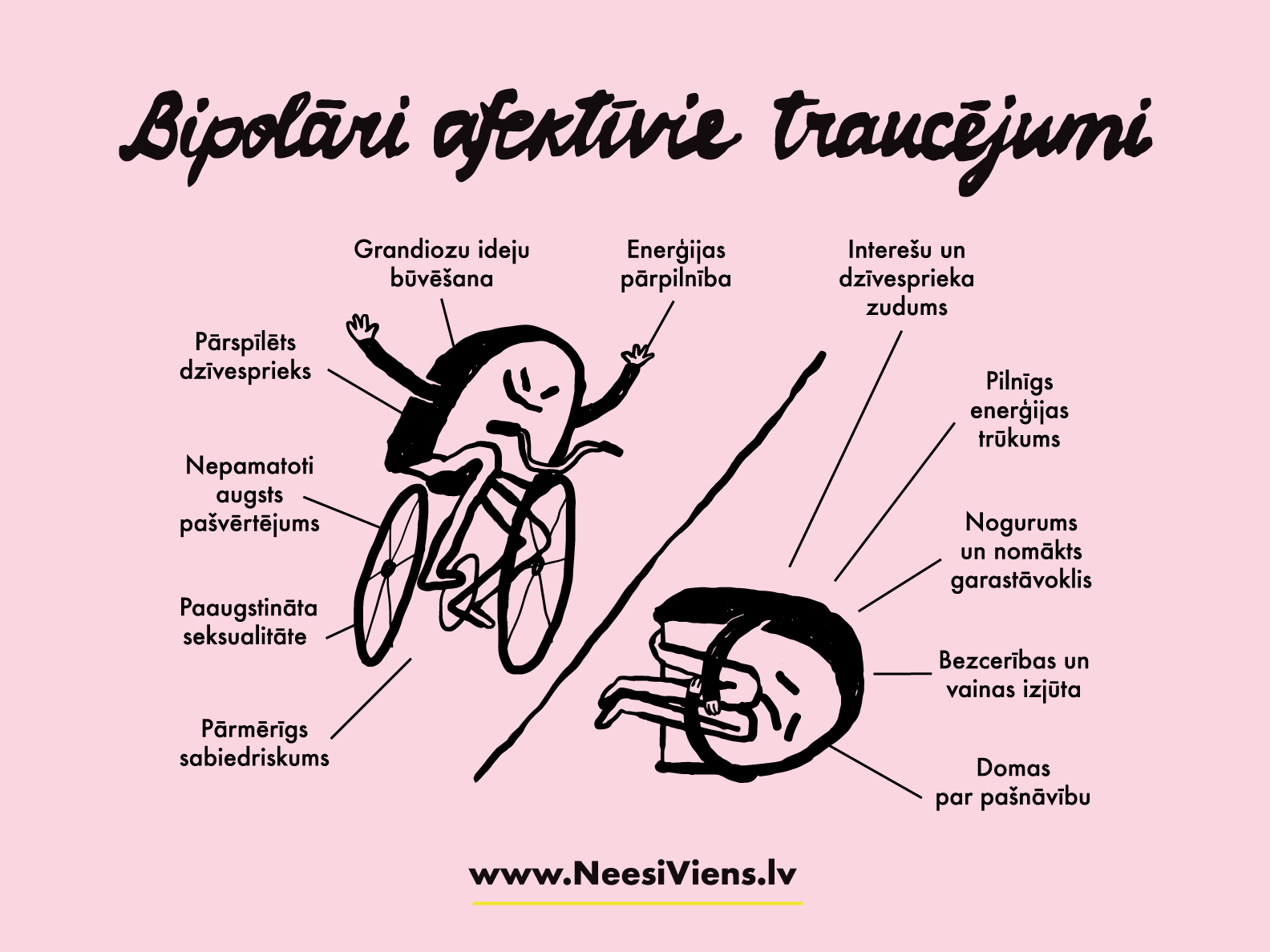 Bipolāri afektīvie traucējumi ir ļoti spēcīga un bīstama slimība. Pats biju domājis par balto kreklu, ka mani sasies, ieliks slimnīcā... Par maz mūsu sabiedrībā par to runā. Es domāju, ka ir ļoti daudz tādu cilvēku kā es, kuri, iespējams, jūtas līdzīgi. Kuri to noraksta uz nogurumu vai darba apjomu. Visbiežāk šie cilvēki tā arī kuļas. Uzņemas projektus, saistības, pēc tam nevar tās izpildīt. Tad kaut kā atkal viss ir kārtībā… Un tā visu laiku. Tā arī es iepriekš kūlos.