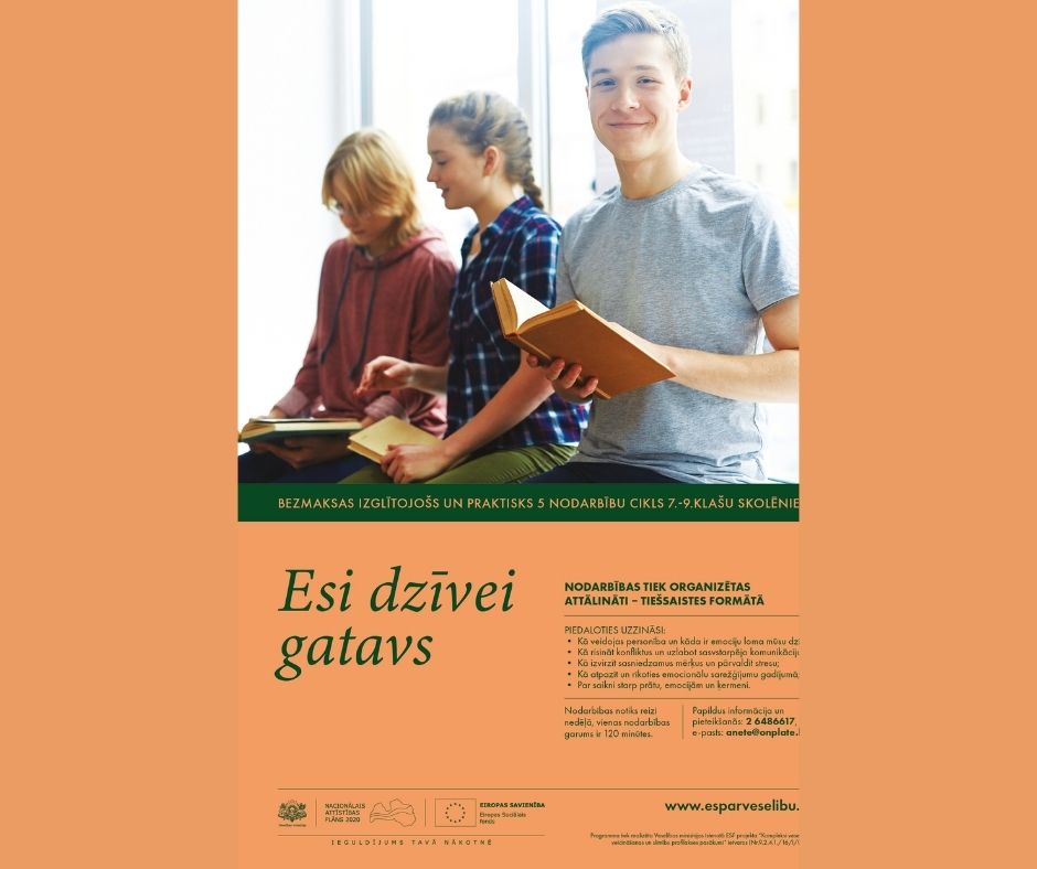 Lai veicinātu jauniešu prasmes, zināšanas un praktiskās iemaņas psihiskās veselības saglabāšanā un uzlabošanā, 7.-9. klašu skolēni aicināti pieteikties bezmaksas izglītojošam un praktiskam nodarbību ciklam “Esi dzīvei gatavs”.