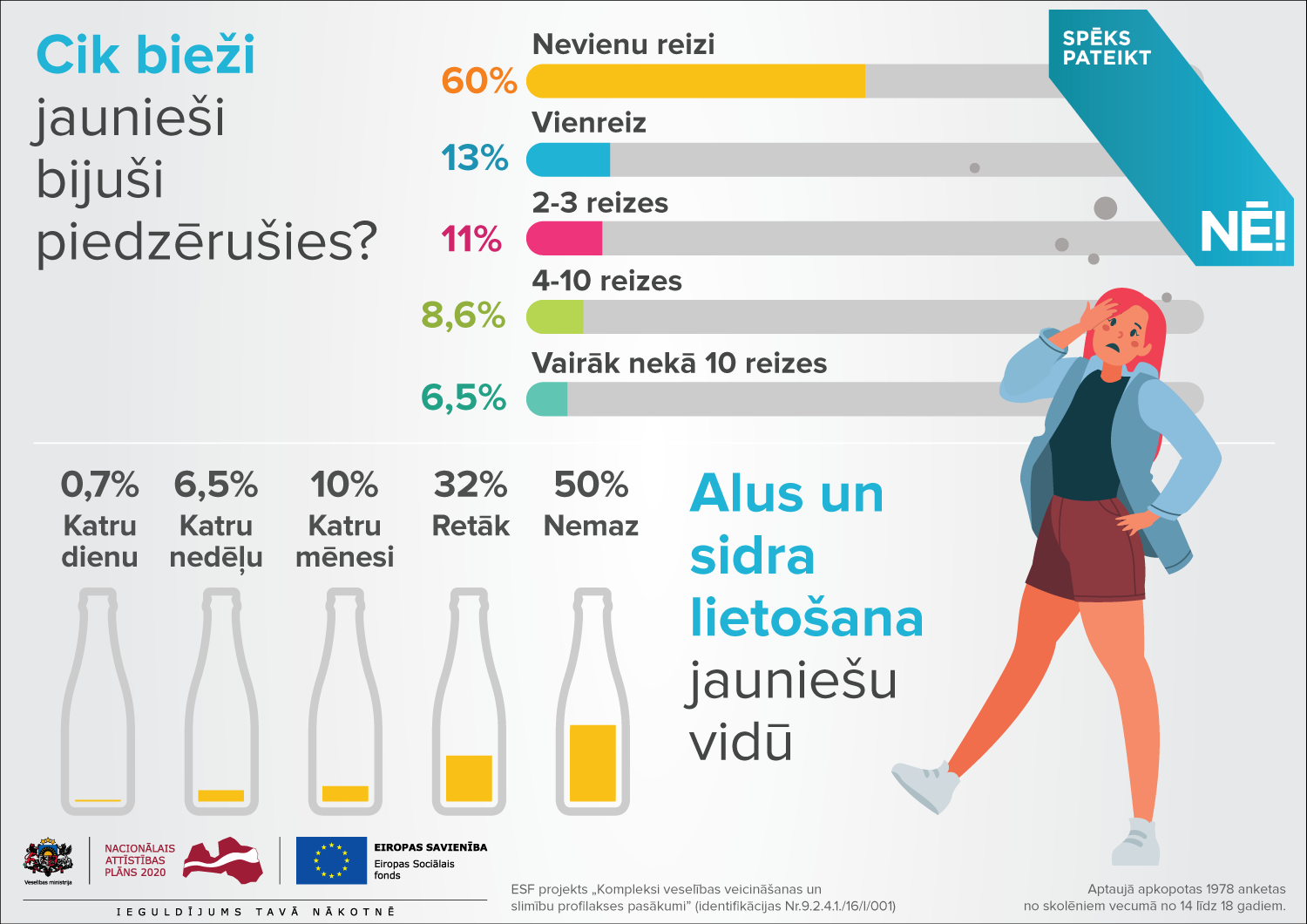 Infografika: Cik bieži jaunieši bijuši piedzērušies?