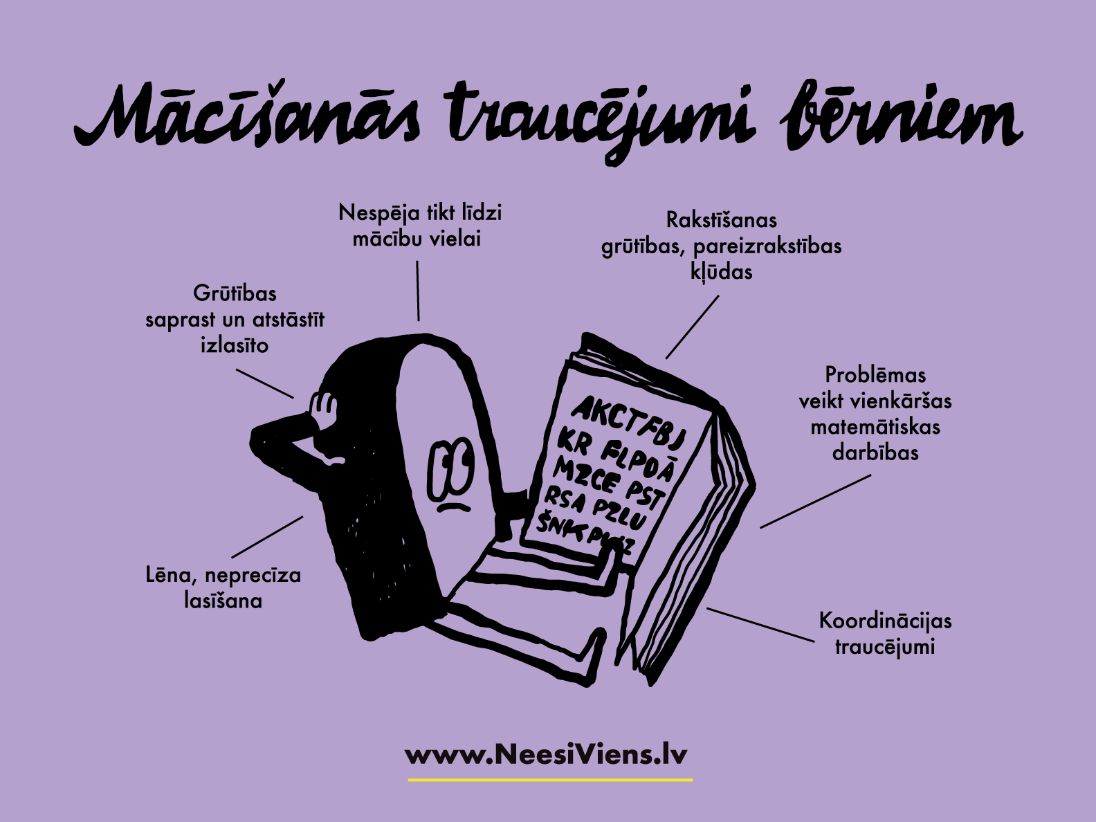 Ir kaut kādas lietas, kuru apgūšana prasa nesamērīgi vairāk darba. Nesamērīgi. Ja sistēmiski, piemēram, reizrēķina apgūšanai skolā ir paredzētas astoņas stundas, tad bērnam ar mācīšanās traucējumiem tas prasīs 80 stundas. Rezultāts beigās varbūt būs tāds pats, vienkārši būs vajadzīgi citi ceļi, kā pie rezultāta nonākt. Viņš visbiežāk nevarēs to izdarīt tādā pašā formātā un laika nogrieznī, kā to izdara viņa vienaudzis, kuram nav mācīšanās traucējumu. Tas prasīs vienkārši daudz, daudz, daudz, daudz vairāk darba.