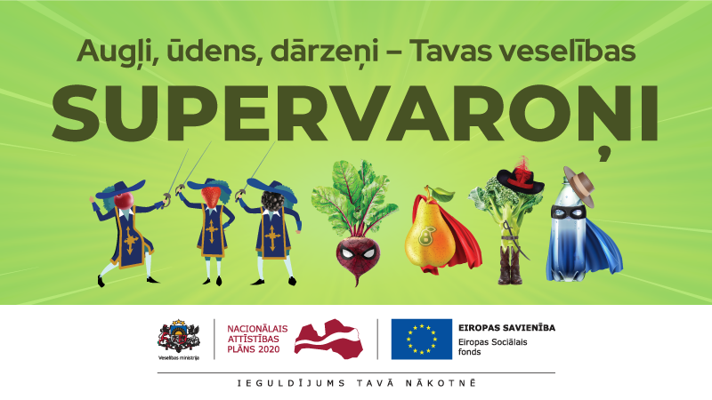 No šodienas, 5. aprīļa, Veselības ministrija (VM) uzsāk informatīvo kampaņu "Augļi, ūdens, dārzeņi – Tavas veselības SUPERVAROŅI", kuras galvenā mērķauditorija ir skolas vecuma bērni un viņu vecāki. Kampaņas ietvaros sadarbībā ar sertificētām uztura speciālistēm ir izstrādāti informatīvi materiāli (bukleti, raksti un video), kas skaidro veselīga uztura pamatprincipus, īpaši uzsverot nepieciešamību ikdienas uzturā iekļaut 5 porcijas dārzeņu, augļu un ogu, kā arī dzert tīru ūdeni. Visos informatīvajos materiālos tiek piedāvāti praktiski piemēri, kā veidot sabalansētu uzturu, aizstāt neveselīgas saldās un sāļās ātrās uzkodas ar veselīgām un viegli pagatavojamām uzkodām, kā arī atgādināts neizlaist brokastis, tādējādi veicinot veselīga uztura paradumu veidošanos ikdienā.
